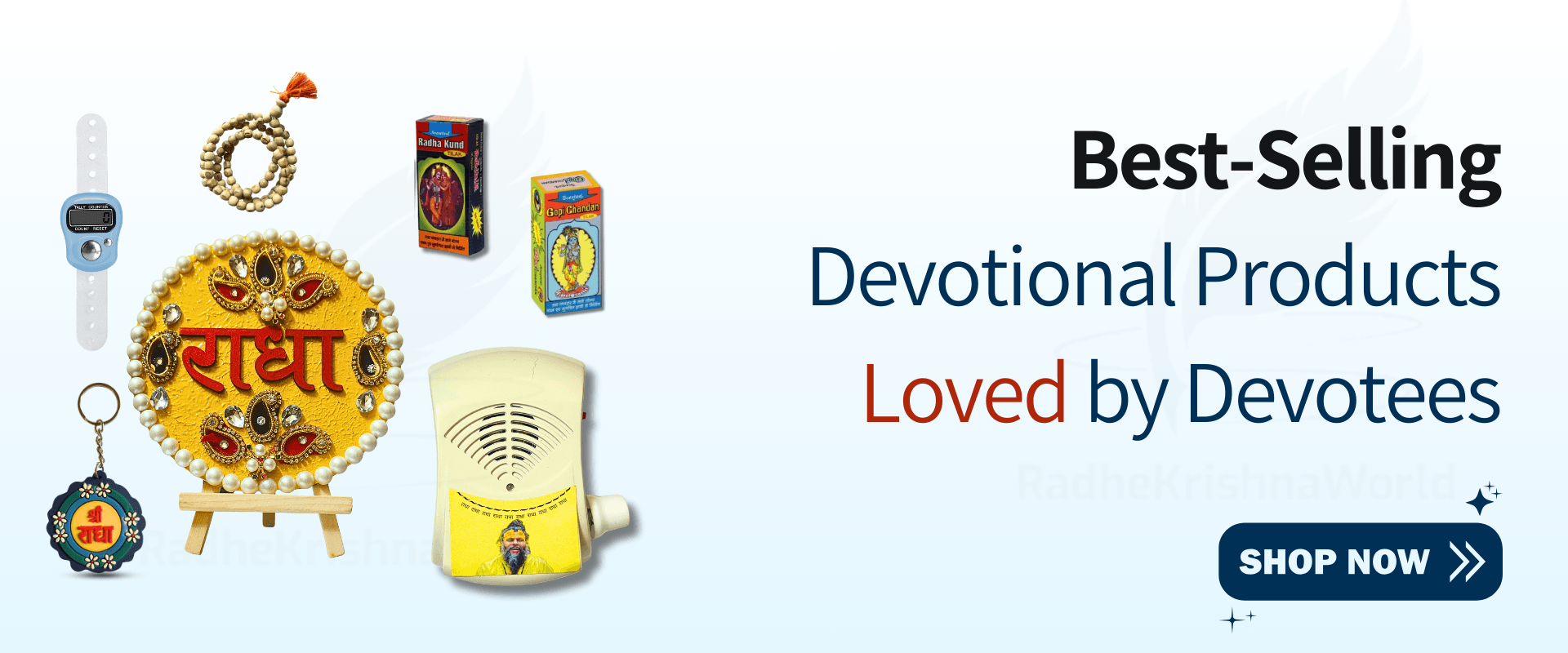 Shop devotional products online and feel the divine connection at Radhe Krishna World.