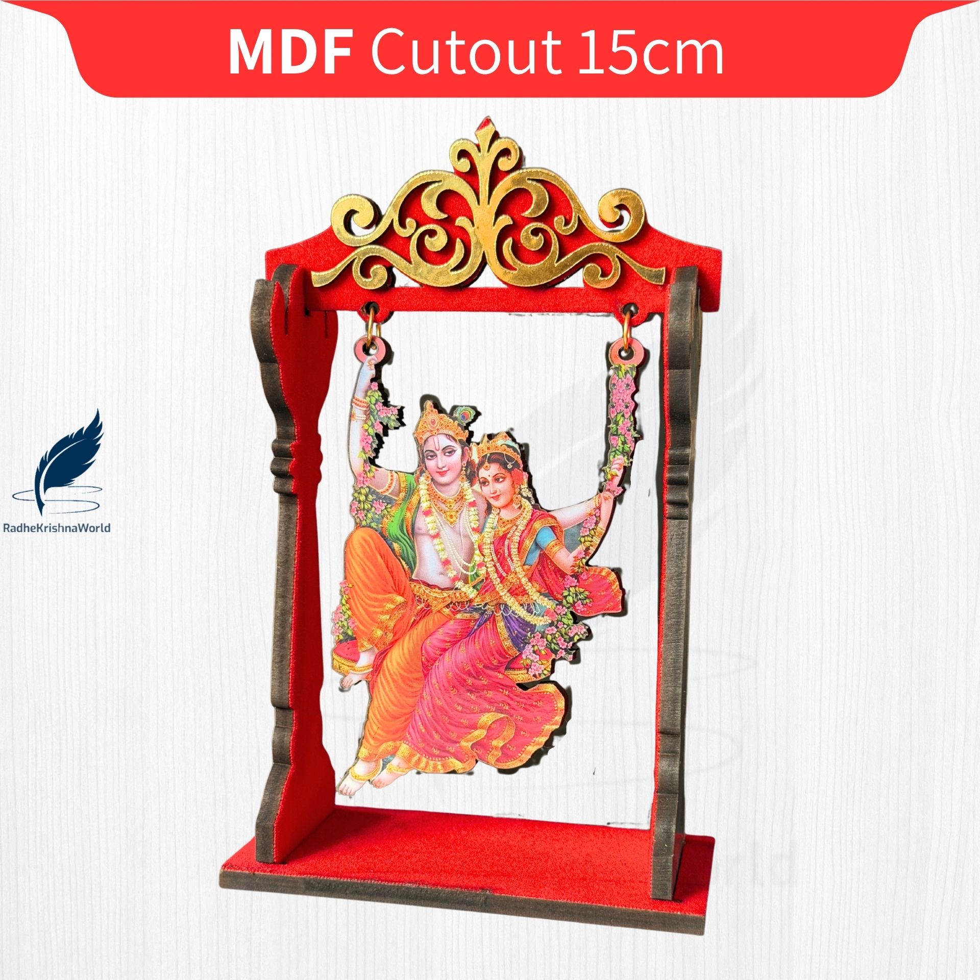 This spiritual product acts as a versatile addition to your living room, study table, or meditation corner. For example, the compact 15cm size of the Shri RadhaKrishna On Swing MDF Cutouts makes it an ideal companion for small temple spaces. Many customers find that it serves as a wonderful gift for Janmashtami, weddings, or spiritual anniversaries. By choosing RadheKrishnaWorld, you receive an authentic product that honors the deep faith of the Braj region. We invite you to explore our full [Internal Link: Vrindavan Deity Cutout Collection] to find more divine forms.