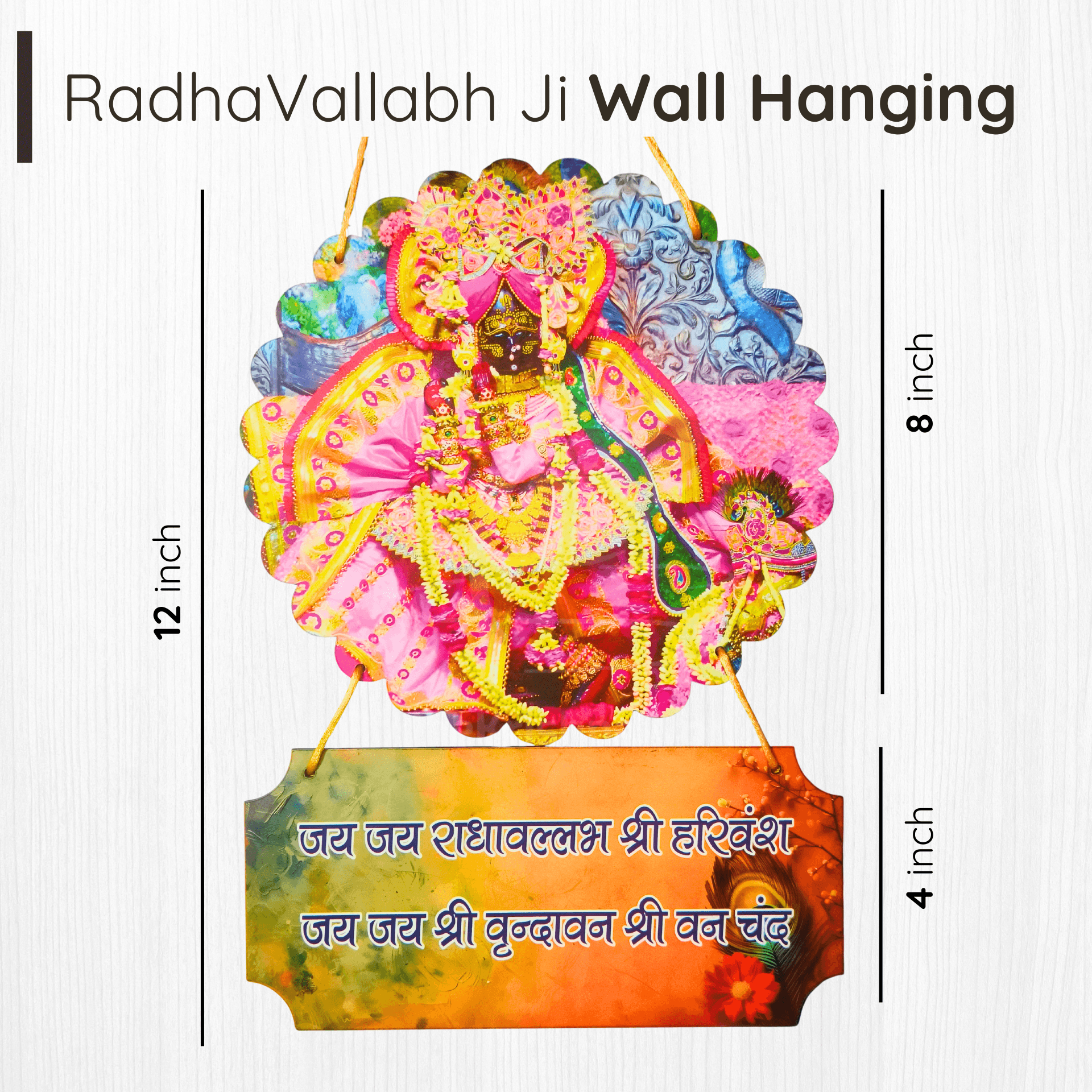 First and foremost, this decor item is crafted from premium, high-density MDF wood. Because we prioritize quality, the material is sturdy and built to last for many years. Furthermore, the high-definition printing captures the intricate details of RadhaVallabh Lal’s Shringar with stunning clarity. Since we believe in perfection, the surface is finished with a smooth protective layer. Moreover, the lightweight nature of the wood allows you to hang it securely on any wall. Therefore, you can instantly upgrade your pooja room without any complex installation.
