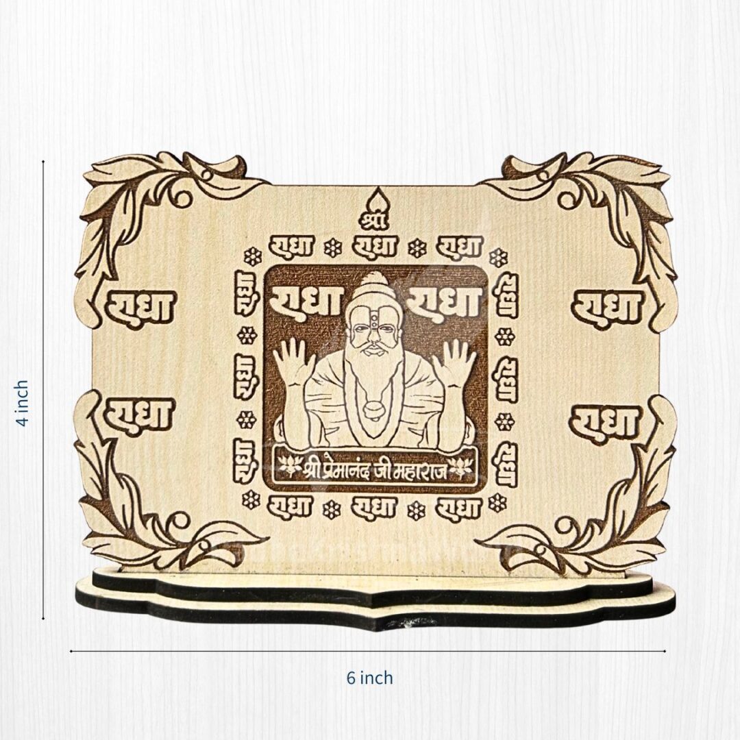 MDF Standy Premanand Ji Maharaj Photo with Radha Radha Name – 4×6 Inch Devotional Table Décor