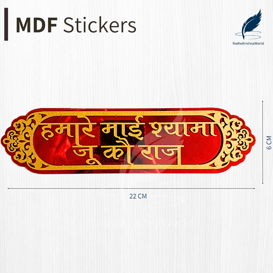 Hmare Mai Shyama Ju Ko Raaj Name MDF Adhesive Sticker – Devotional Temple Wall Décor